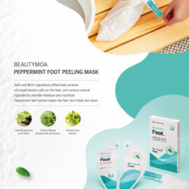 The foot peeling mask by polyclean is a revolutionary Korean cosmetic product that AHA and BHA ingredients effectively remove dead skin cells from the feet, and various natural ingredients provide moisture and effect. And peppermint leaf extract refreshes and cleans the skin of your feet.