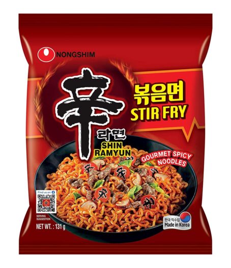 - Nongshim’s Shin Ramyun Stir Fry gourmet spicy instant noodles, This pack contains 5 (Five) single serve pack each of 131 g.