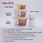 Hulock airtight containers are unbreakable, fully transparent with elegantly designed vacuum receptacle lids for easy sealing.